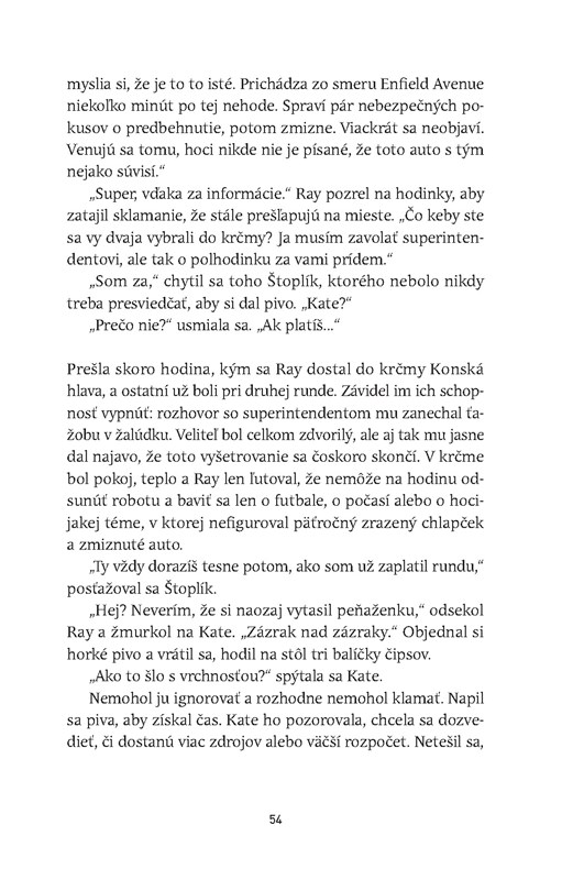 Zároveň nám kniha ponúka aj prácu vyšetrovateľov, ktorí sa nezastavia, kým nezískajú dôkazy, ďalšie stopy, a keď ich dostanú, tak sa nevzdajú a hľadajú za nimi niečo viac.