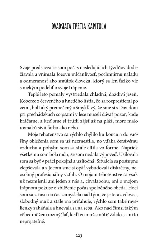 Kniha bola presne taká, ako som očakávala. Jednoduchý romantický príbeh, kde už na začiatku viete, kto s kým skončí. Tak trochu klišé. Ale presne takéto klišé som potrebovala teraz čítať a veľmi som si pri knihe oddýchla. Hoci bol dej ľahko predvídateľný, vôbec mi to nevadilo. Spôsob, akým bola kniha napísaná, ma vtiahol do deja hneď na začiatku a neopustil ma až do konca čítania.