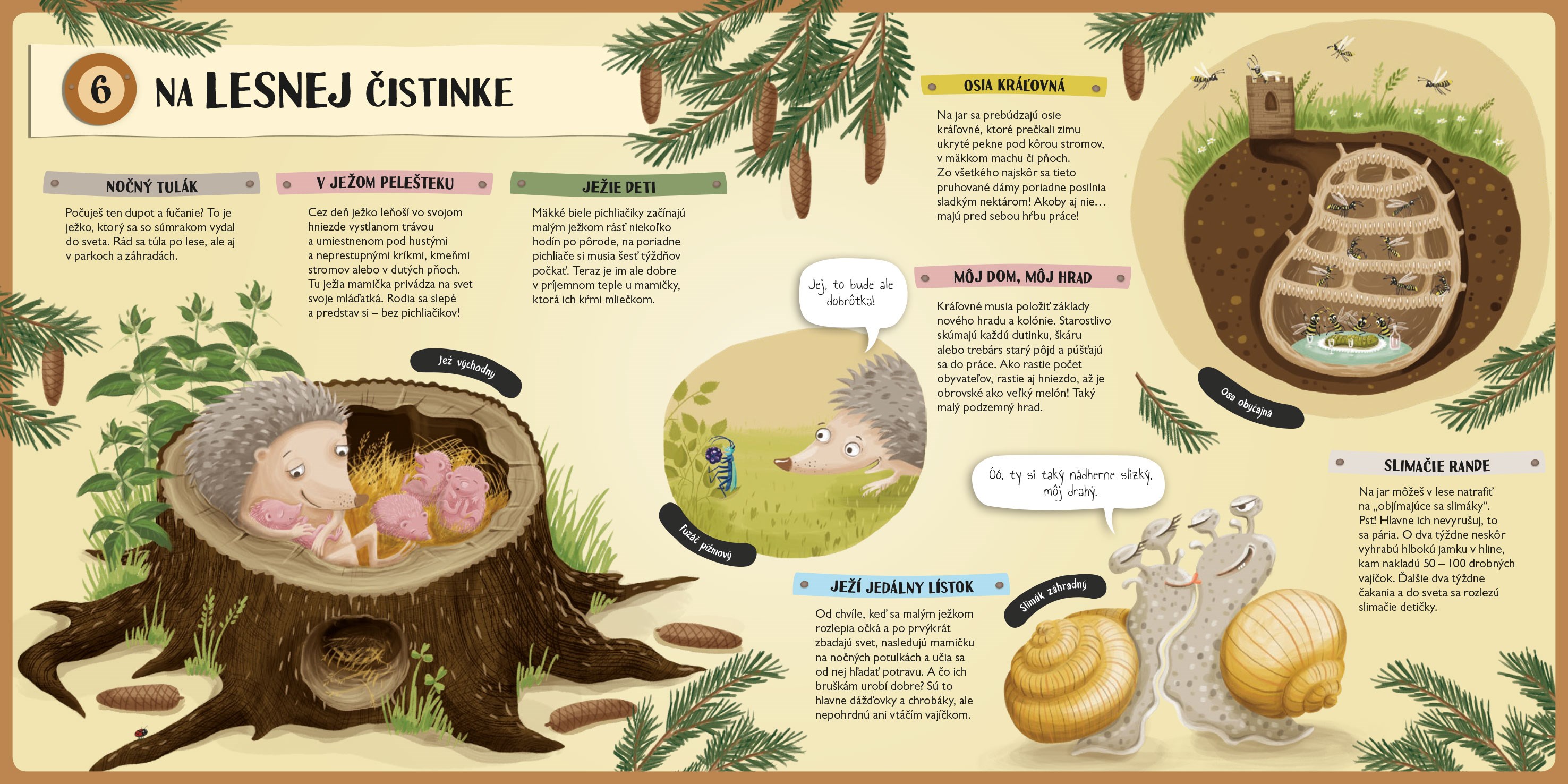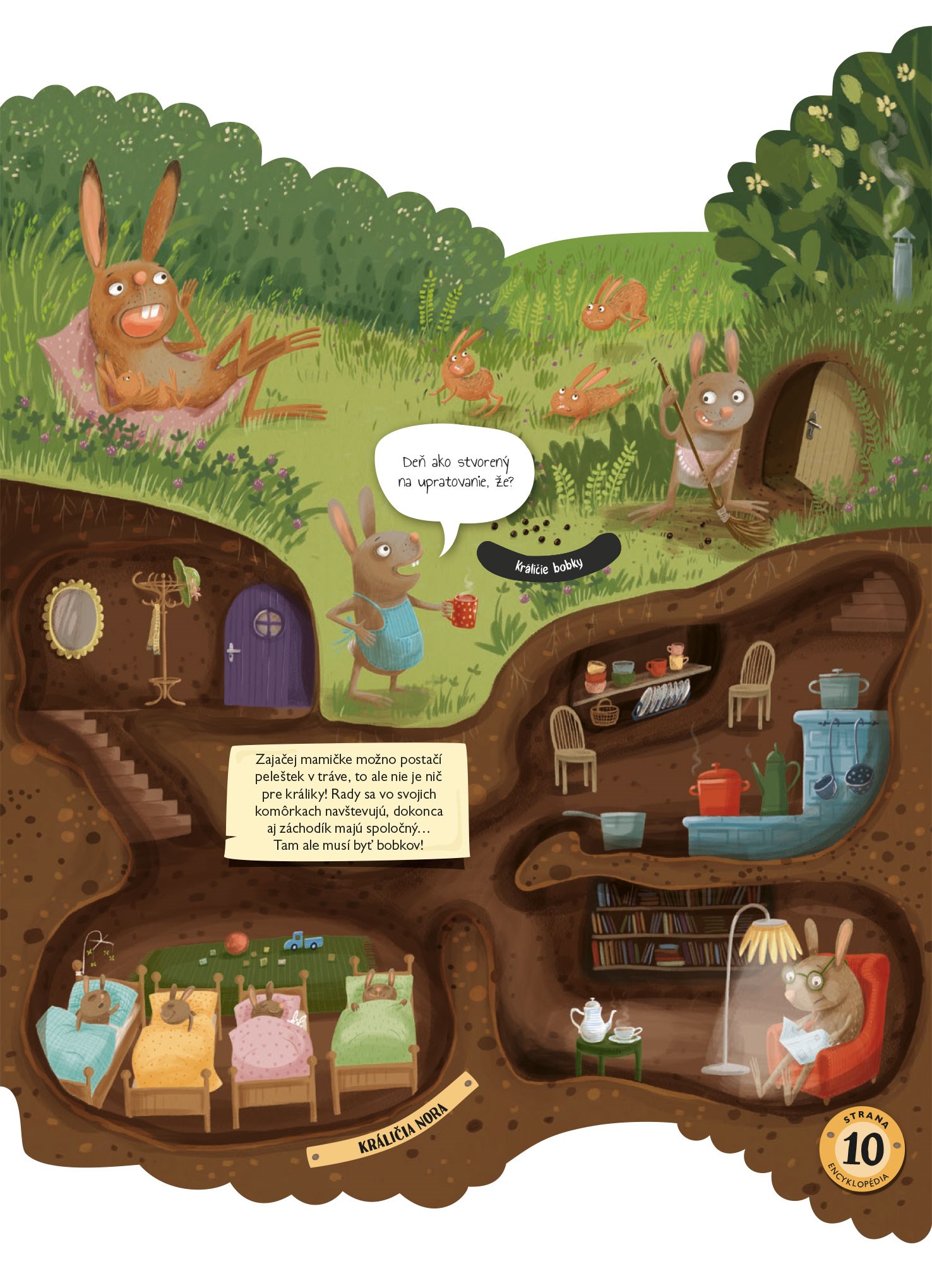 Viete o tom, že hrdzavá líška je veľká neporiadnica a že jazvec je jedno z najčistotnejších zvieratiek, ktoré má dokonca svoj vlastný záchodík? Napriek tomu sú to susedia, ktorí sa často delia o jednu noru. Neveríte? Tak s nami poďte nazrieť do ich tajomných domčekov a komôrok ukrytých pod pníkmi a vývratmi v hĺbke aj niekoľkých metrov pod povrchom... Budeme sa predierať podzemnými labyrintmi a navštívime veselú králičiu rodinku, ale trebárs aj ospalé medvede v ich jaskynnom pelešteku a nezbedné malé lasice v nore zdedenej po myškách. Z nádherne ilustrovanej encyklopédie, ktorá je súčasťou knihy, sa dozviete ďalšie zaujímavosti z ríše zvierat – napríklad aj to, že aj obávaný a neohrozený medveď grizzly sa jednému malému zvieratku radšej vyhne oblúkom... Tak na čo ešte čakáte? Hor sa do lesných brlohov a dúpät!