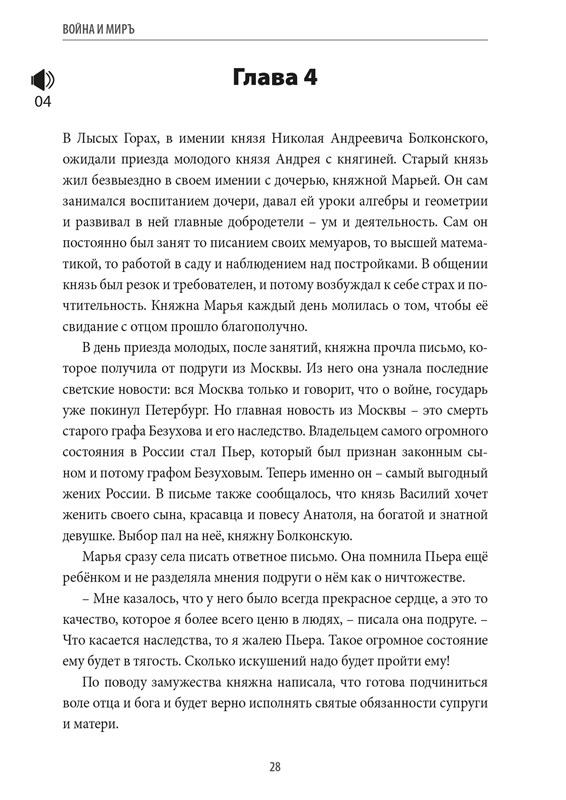 Publikace nabízí zjednodušenou verzi románu, která je určena mírně pokročilým studentům ruštiny úrovně B1 až B2. Knihu doplňuje audionahrávka, kterou namluvila rodilá mluvčí. Můžete tak sledovat psaný text nebo poslouchat nahrávku zvlášť.