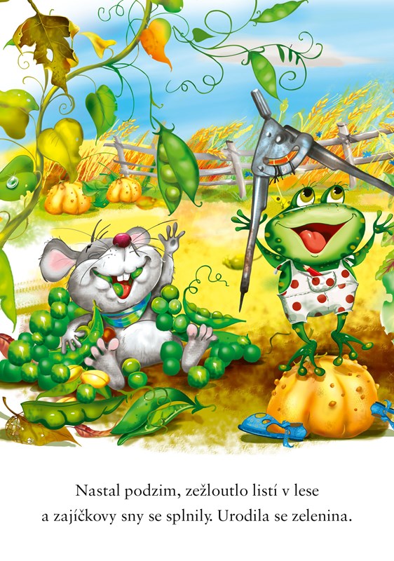 V naší milé knížce plné barev a zvířátek najdete například pohádky o tom, jak šikovný zajíček pěstoval na zahrádce zeleninu, jak přišla velká voda nebo jak malí kamarádi hledali poklad. Vydejte se s nimi za dobrodružstvím!