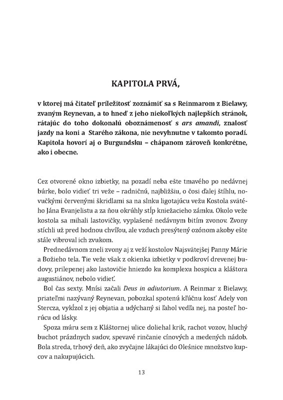 Dej je zasadený do husitského obdobia okolo roku 1420. Sapkowski si dal naozaj záležať na zachytení doby a venuje sa nespočetnému množstvu osôb a udalostí, ktoré sa v tom čase udiali. Mená a miesta chŕli jedno za druhým, miestami som mala problém sa v postavách orientovať, alebo som skôr mala problém rozlíšiť, na ktoré sa mám sústrediť, pretože sa nimi bude zaoberať aj na ďalších stránkach alebo ich môžem vypustiť, pretože sú spomenuté len na vernejšie zobrazenie doby a viac sa s nimi v deji nestretnem. Znalcovia tohto obdobia by takýto opis určite vedeli oceniť, mne ako absolútnemu laikovi, ktorý išiel do čítania s tým, že to bude viac fantasy ako historický román, to veľa nehovorilo.