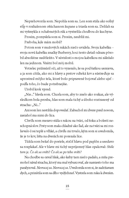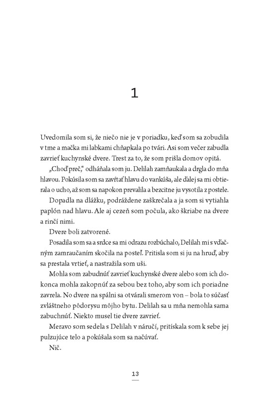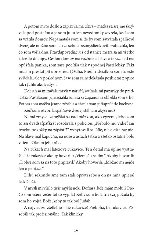 Neznámy vlámač ju prepadol v byte. Odvtedy má nočné mory a obavy o svoj život. V práci túži postúpiť, už nechce byť len obyčajnou redaktorkou. Ani jej vzťah s Judahom nie je práv...