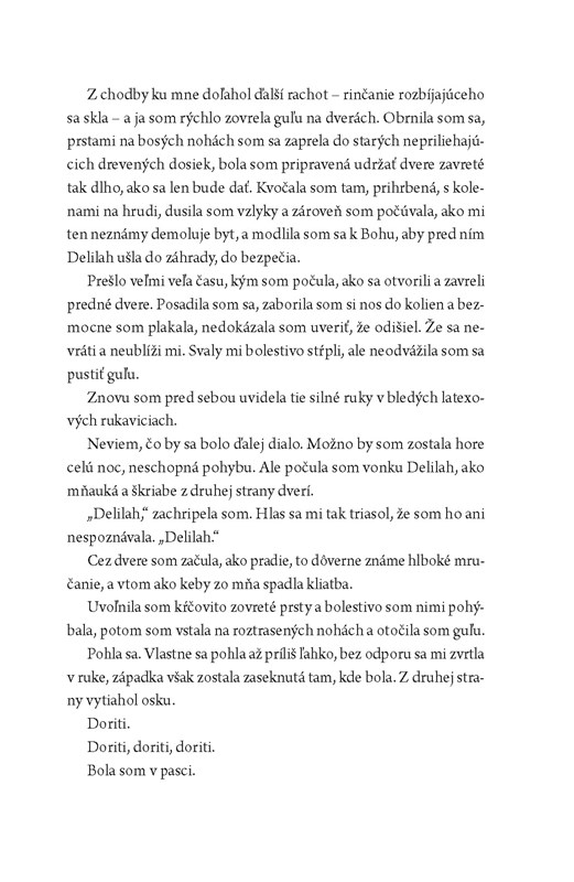 Autorka vierohodne a detailne spracovala vnútorný nepokoj hlavnej hrdinky, do popredia kladie jej vlastnú predstavivosť a zmiešané pocity. Neraz vás zamrazí v zátylku, no chytľavý dej vás núti neustále obracať strany. Príbeh je rozdelený do ôsmich častí, kapitoly sú primerane dlhé, celý text sa číta v podstate rýchlo. Občas môžu niekoho zaskočiť zdĺhavé opisy postáv či prostredia, ale autorka tak len umocňuje váš zážitok z čítania. Inak je obsah ľahko stráviteľný, takže aj napriek väčšiemu rozsahu knihy nie je text rozvláčny.