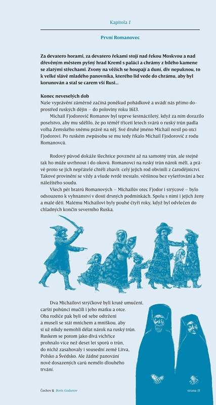 Z ruské tvorby vybrala Renáta Fučíková opět sedm nejslavnějších her. Kromě Čechova (Racek, Strýček Váňa, Tři sestry a Višňový sad) budou zastoupeni i Puškin (Boris Godunov) a Gogol (Revizor, Ženitba). Převyprávění her jsou orámována naučnými pasážemi o ruské historii, umění, vědě a životním stylu všech společenských vrstev. Kniha vychází s podporou Ministerstva kultury ČR.