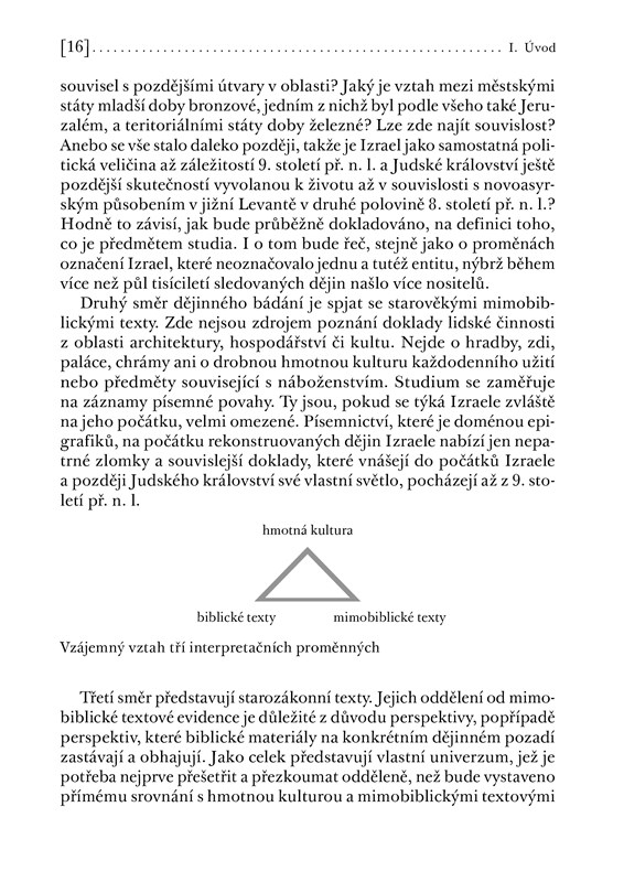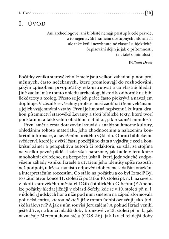 Kniha popisuje vznik starověkého Izraele ze tří hlavních úhlů pohledu, respektive zdrojů, které se snaží metodologicky držet v rovnováze a pouštět do rozhovoru vzhledem k jejich výpovědním možnostem. Prvním je hmotná nepísemná kultura (archeologie), druhým písemné doklady nebiblické provenience (zvl. asyrské texty) a třetím biblické texty. Důraz je kladen na představení základních existujících teorií a jejich kritické zhodnocení vzhledem k tomu, jak pracují či naopak nepracují s uvedenými zdroji. Autorův pohled na vznik Izraele je kritický k některým tvrzením o raných počátcích Izraele stejně jako k potvrzování téhož na základě biblických textů. Za zásadní považuje rozpoznání a zohlednění konceptů paměti a identity, které hrají při utváření dějinného vědomí klíčovou roli.