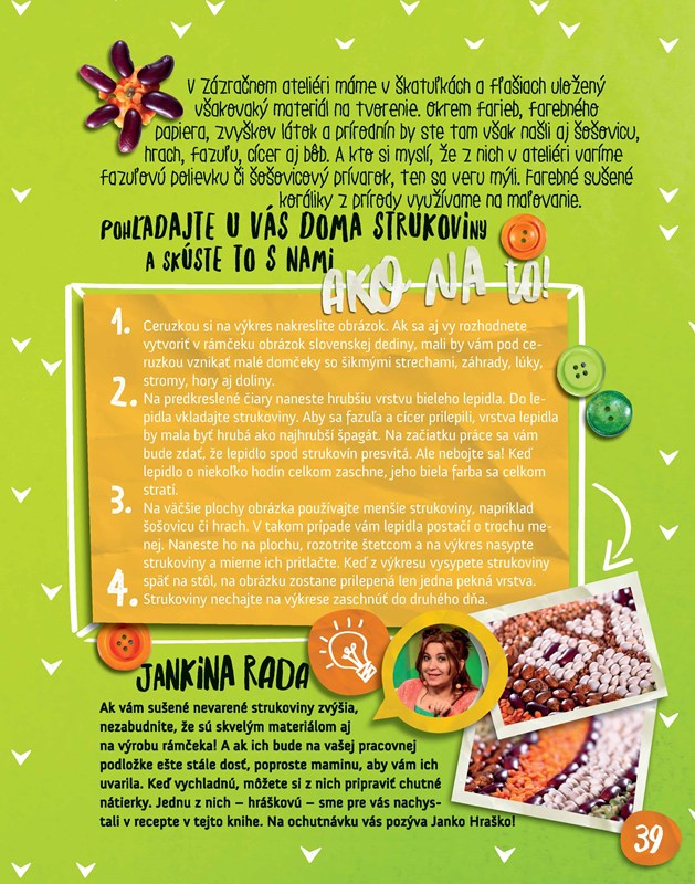 Čitatelia od 5 rokov, ktorých Janka a Tomáš originálne nazvali tvorkovia a tvorilky, vstúpia po otvorení knižky do sveta až 37 nápadov a receptov, ktoré potešia zvedavé očká i pošteklia maškrtné jazýčky.