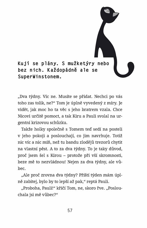 V několika hamburských školách dojde k loupeži. Lupiči si pokaždé odnesou školní trezor a v něm uložené peníze za školní obědy. Ve škole, kam chodí Kira, se ovšem neztratí žádné peníze, ale maturitní písemky z matematiky! Jedna z nich patří i Tomovu bratrovi Nicovi, takže Kira a její kamarádi jsou odhodlaní pachatele vypátrat. A to by nebyl Winston, aby se do pátrání také nezapojil! Kromě zločinců však tentokrát bude muset svést souboj i s nečekaným rivalem, bílým kocourem, který se zničehonic objevil ve dvoře a také se uchází o přízeň Winstonovy vyvolené Odety…