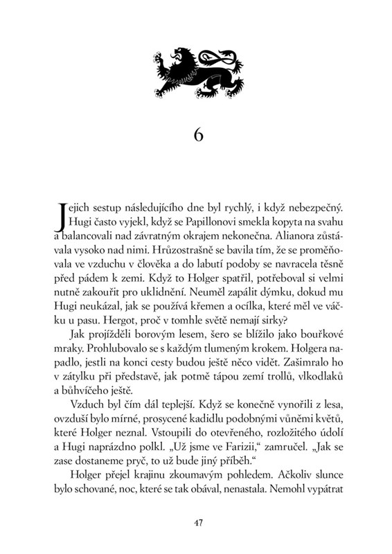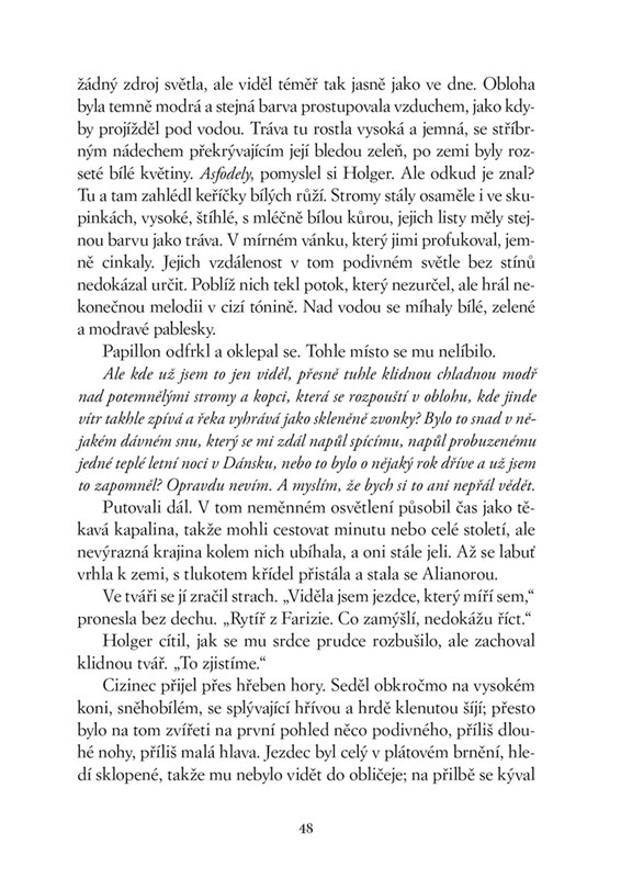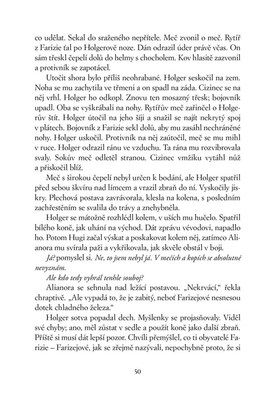 I tady však zuří válka. Obludné armády Kruhu temnot se stahují kolem posledního ostrova lidského rodu. Chtějí ho zničit a Holger má být při tom. Čeká ho setkání se vznešenými Farizeji, kteří ovládají prastarou magii. Utká se s obry, s rusalkou navštíví jezerní království a jen o vlásek unikne smrti rukou děsivého trolla. Proti své vůli se stane rytířem, o němž vyprávějí legendy…