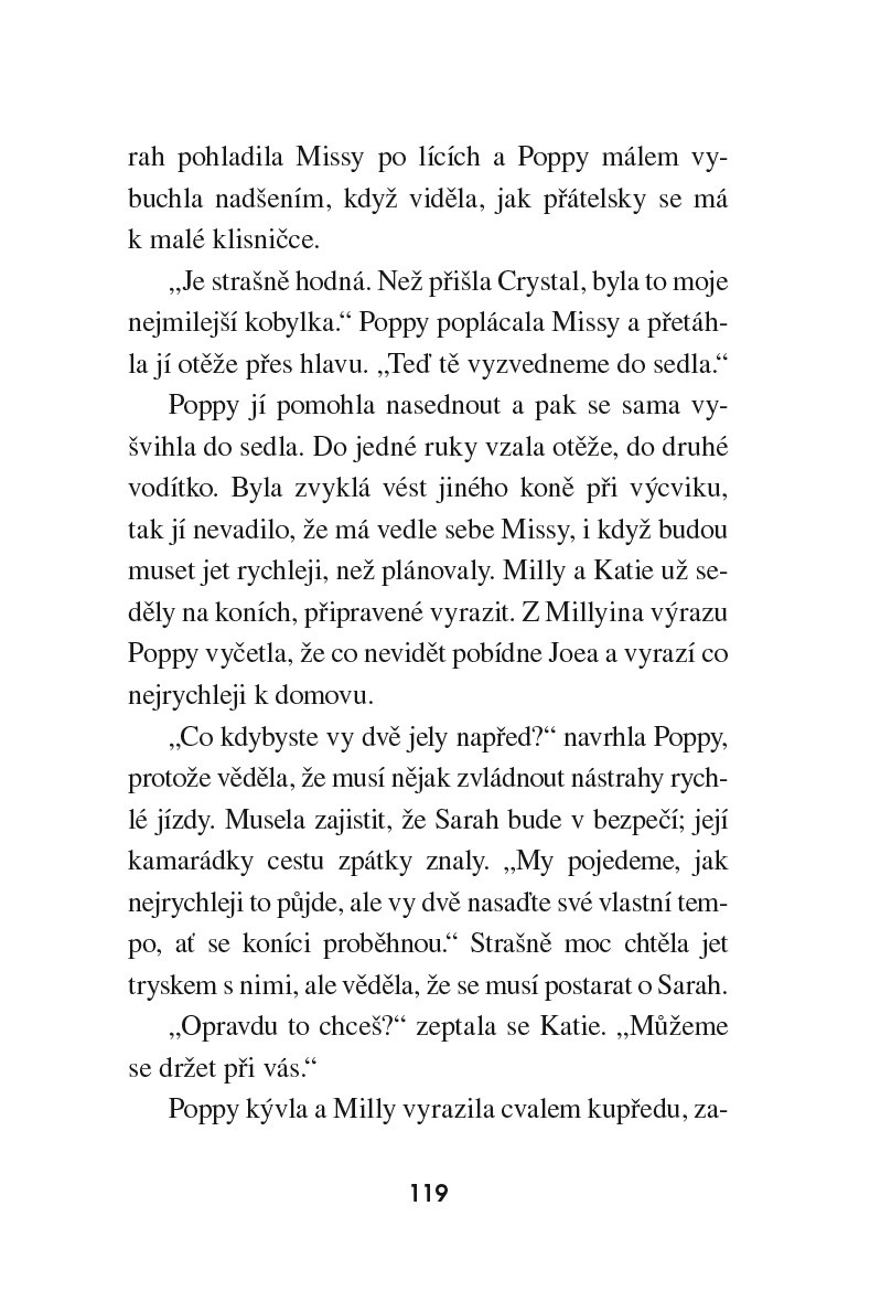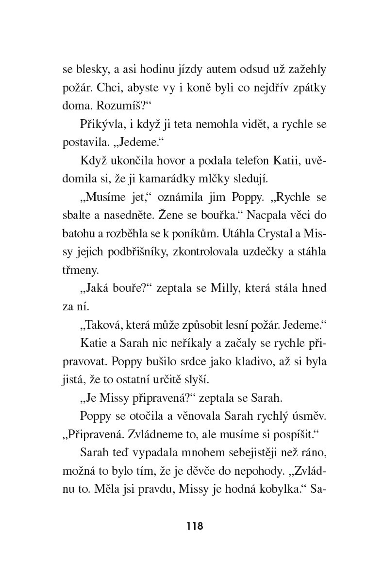 Poppy přiveze na Zlatou hvězdu svoji nejlepší kamarádku Sarah. Těší se, že si společně s Katií a Milly užijí jízdu na koních, ale Sarah s nimi jejich nadšení nesdílí. Vlastně se koní spíš bojí a raději pomáhá s péčí o menší zvířata. Pak ale holky Sarah přesvědčí, ať s nimi vyrazí na projížďku. Pojedou přece krokem a nic se nemůže stát! Jenže je zastihne prudká bouřka a od úderu blesku začne hořet. Jak holky tuto dramatickou situaci zvládnou?