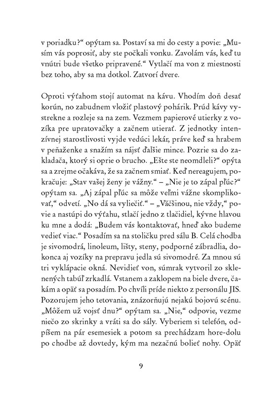 Táto kniha je veľmi autentická a napísaná bez príkras. Vedela som, že autorovi môžem ako rozprávačovi veriť, pretože nevynechával ani nepríjemné alebo neestetické súčasti života, ktoré ľudia pri písaní príbehov väčšinou ignorujú a tvária sa, že neexistujú. Všetko písal bez príkras a reálne. Napriek tomu som však mala s prvou časťou knihy trochu problém. Rozprávanie bolo veľmi chaotické, no to som dokázala pochopiť. Tom zažíval obrovský stres, celý čas bol unavený a psycický vyčerpaný a fungoval na čistom adrenalíne. Mala som však problém s tým, že Tom mi ako rozprávač neprišiel veľmi sympatický a príjemný. Často na mňa pôsobil trochu drzo a jednoducho ako človek s ktorým by som sa nechcela veľmi stýkať. Neviem, čím to bolo, či jeho prejavom alebo niečím iným, no dosť som s knihou kvôli tomu bojovala. Navyše celá prvá časť knihy opisuje len obdobie, kedy Tom trávil čas len v nemocnici pri svojej žene a čerstvo narodenej dcérke. Rozprávanie je tak plné lekárskych termínov, rozhovorov so sestričkami a v podstate takmer žiadnej intimity. Tom zo svojho vnútra veľa neodhaľuje, žije len pre daný moment, ktorý ale dlhý čas nie je vôbec príjemný. Keďže sa zameriava len na seba, svoju ženu a dcéru v ich súšasnej situácií, nevedela som nič o ostatných postavách, ich životoch a minulosti, čiže sa mi s nimi ťažko súcitilo a v podstate mi na nich nezáležalo.
