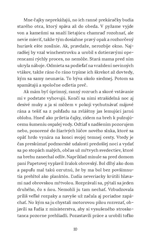 Do Thériaultovej knihy sa môžeme ponoriť bez strachu, môžeme sa v nej pokojne kúpať a prežívať podobné pocity, ako Luc pri plávaní v mori. Vytrženie, úžas, i náhle pozabudnutie na to, že pod hladinou ešte stále nevieme dýchať.
