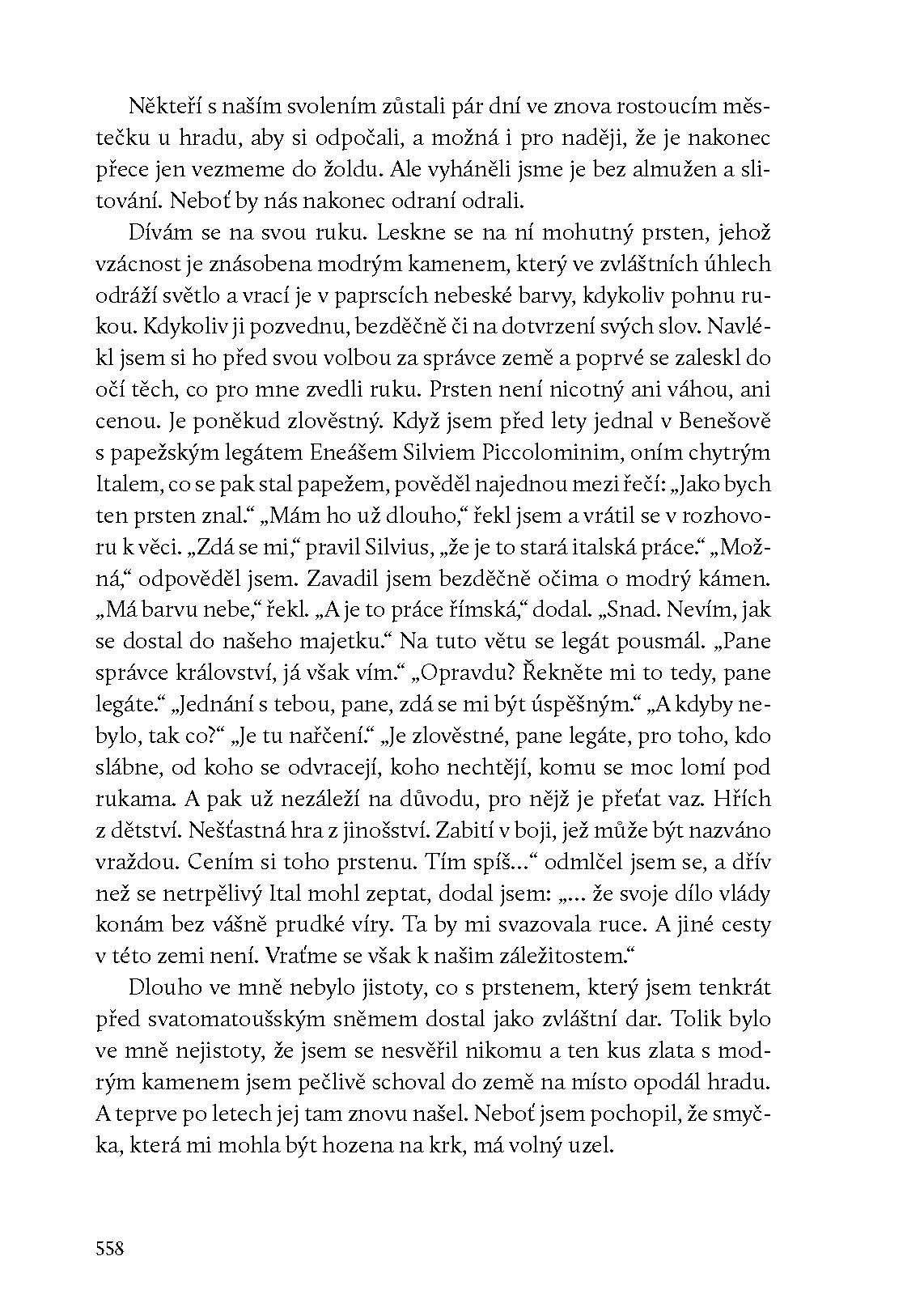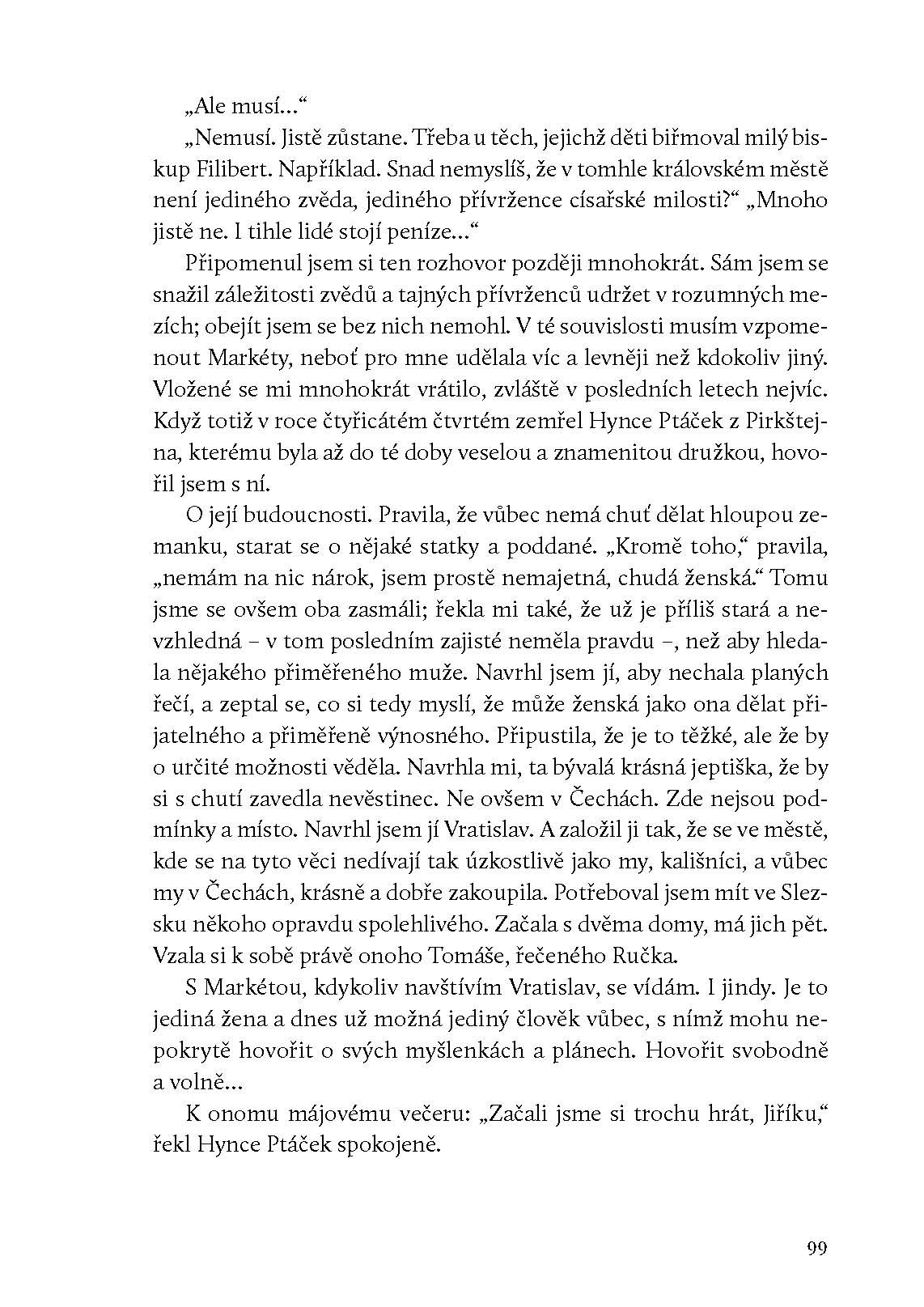 Jeden z nejlepších českých historických románů dvacátého století, jehož autorem je nikoliv historik, ale český mistr detektivky, proslulý ústřední postavou kapitána Exnera. Podobně jako ve světové literatuře například Alexandre Dumas, Robert Graves či Mika Waltari zvolil Václav Erben formu fiktivních pamětí a stylizoval se do role jejich nálezce. Ve svém košatém a akčním vyprávění se soustředil na dobu Jiříkova mládí a vzestupu k moci za poručnictví všeho schopného intrikána Hynce Ptáčka z Pirkštejna. Jiřík je vykreslen jako typický politik renesance, schopný si poradit ve složitých poměrech tehdejších Čech.