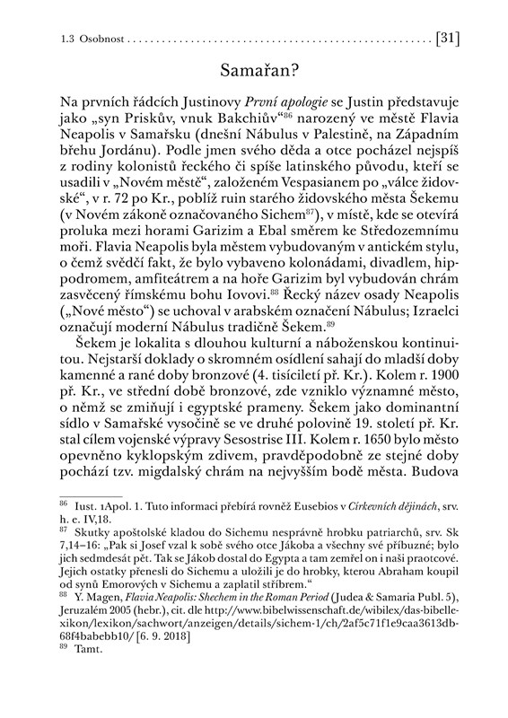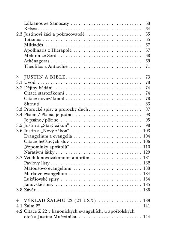 Kniha Justin Mučedník a jeho Bible vám priblíži tvorbu a odkazy, z ktorých autor kresťanského textu čerpal. Autorka sleduje spôsob zapisovania odkazov, ako aj stavbu viet či doslovné/parafrázované prevzatia častí z Nového alebo Starého zákona. To ju privádza k tomu, že samotné zdroje musí porovnávať a nájsť metodologickú následnosť v Justínovom zaznamenávaní. Recipient tak nesleduje už len samotný text Justína, ale i jednotlivé časti, ktoré boli preňho inšpiráciou a poslúžili na obhajobu viery.
