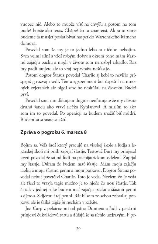 Celospoločensky známy a uznávaný sci-fi román ocenený v roku 1960 Hugo Award, na motívy ktorého vznikol i film Charly (1968) ocenený Cenou akadémie za najlepší herecký výkon v hlavnej úlohe, funguje ako netradičný buildungsromán, poukazujúci na problémy znevýhodneného jednotlivca, ale i na reflektovanie ,,odvrátenej strany" vyspelej technickej a pokrokovej spoločnosti či spoločnosti ako takej.