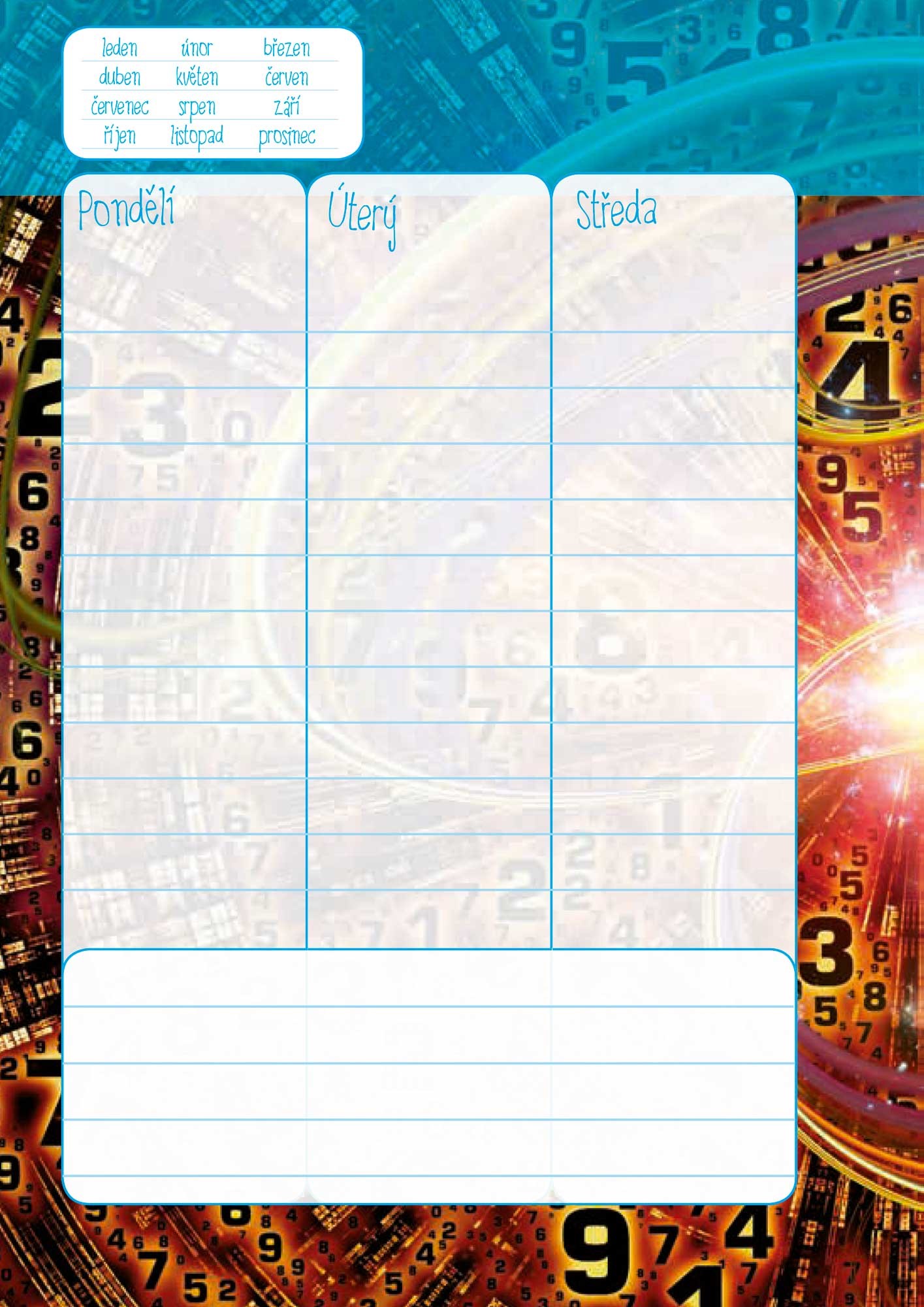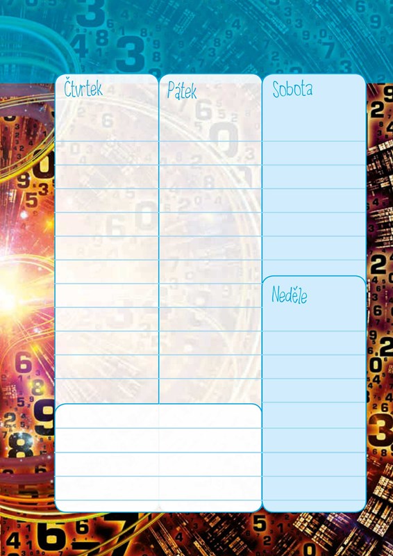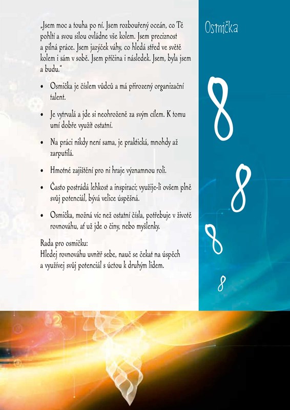Kromě toho vám bude i malým průvodcem světem čísel v souvislosti s vaším číslem životním. Poukazuje na jeho kvality i úskalí, a dává je do souvislosti s aktuálním obdobím. Kromě numerologických rozkladů najdete v diáři každotýdenní motivaci a několik slov k tomu, nač se aktuálně soustředit. Výjimečné je i jeho grafické zpracování.