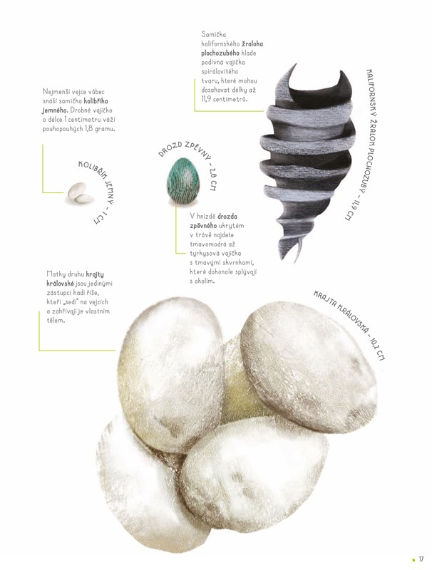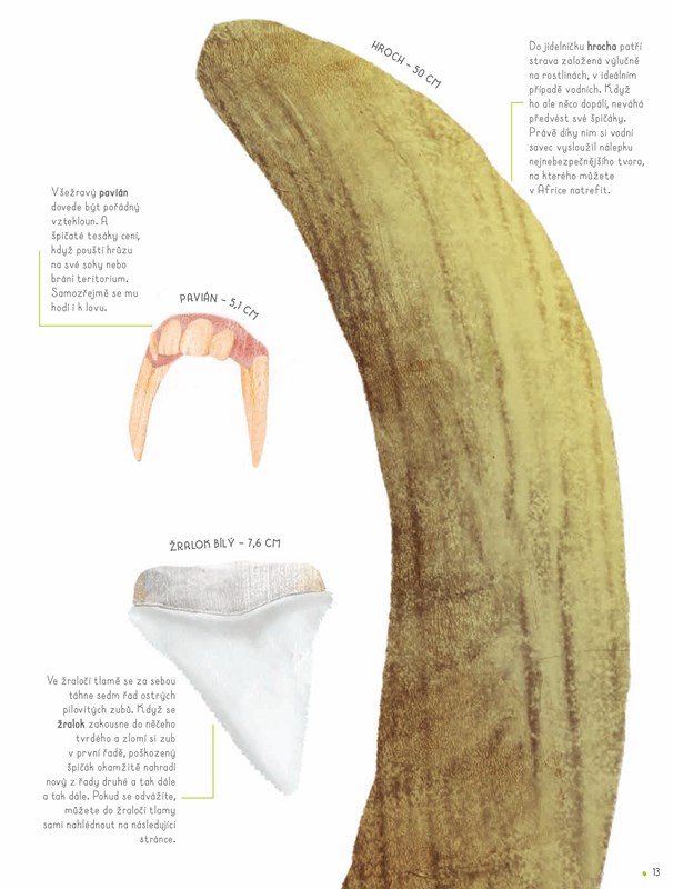 V této knížce najdete DETAILNÍ ILUSTRACE V MĚŘÍTKU ODPOVÍDAJÍCÍM REALITĚ, které vám pomohu udělat si přesnou představu, jak velká zvířátka nebo jejich části doopravdy jsou. Stránkami můžete jednoduše listovat sem a tam a seznamovat se s představiteli zvířecí říše od těch nejmenších po největší, nebo naopak. Můžete začít například u kolibříků nebo u hmyzu a porovnávat rozměry, jaké mají jejich vajíčka, kly, jazýčky, ocásky, oči nebo stopy jednotlivých zvířat, a zároveň si o nich můžete něco zajímavého přečíst.