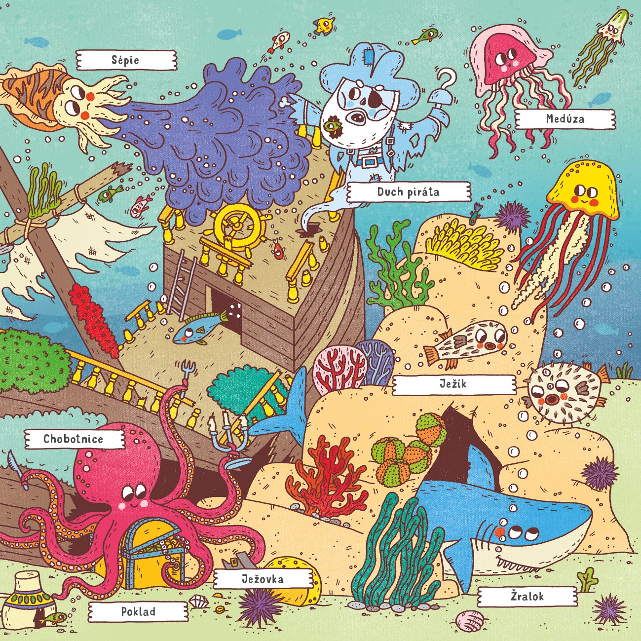 Bylo, nebylo… V hlubokém moři žila malá mořská víla, která si ráda hrála na schovávanou s rybkami. V podmořské říši však nežily jen ryby. Bydleli tu i jiní tvorové: chobotnice, krabi, želvy, ústřice… Poznávej je spolu s malou mořskou vílou.