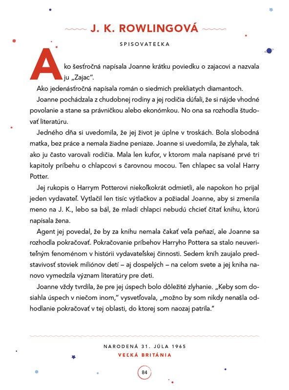 Formulky kedysi žilo také a onaké dievča či kde bolo, tam bolo mohli byť trochu obmenené, aby text pôsobil živšie. Niekedy – najmä ak čítate viac príbehov za sebou – to už pôsobí ubíjajúco. Taktiež sa mi nejaví ako vhodné použiť na začiatku príbehu kedysi dávno žilo dievča, keď ide o niekoho, kto sa narodil len nedávno a navyše ešte stále žije. Napríklad na strane 180 nájdeme príbeh o dievčine narodenej v roku 1988, ktorý začína touto vetou. Avšak až tak dávno to nebolo, vzhľadom na to, že sa v knihe objavila aj Nefertiti, ku ktorej príbehu táto formulka pasuje oveľa viac. Iste, je pravdepodobné, že kniha sa bude čítať aj o tridsať rokov, no aj tak…