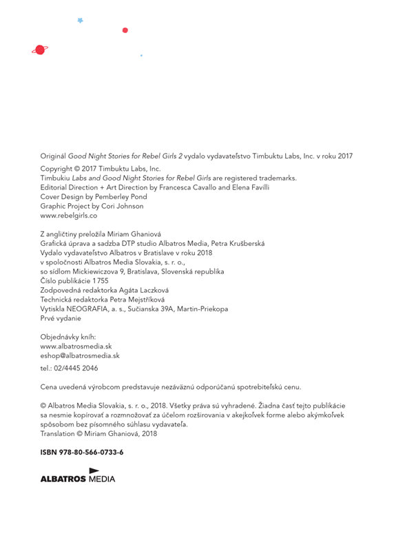 Knižka krátkych rozprávok, teda skôr skutočných príbehov podaných zjednodušenou rozprávkovou formou, Príbehy na dobrú noc pre rebelky otriasla svetom a dokonca i naším malým Slovenskom. Kniha sa stala hitom, a tak niet divu, že len niekoľko mesiacov po vydaní prvého dielu sa na knižnom trhu ocitlo pokračovanie tejto série.