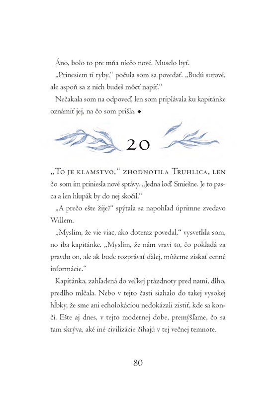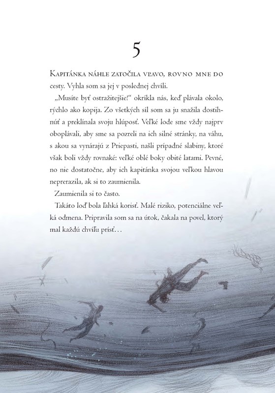 Práve táto zložka, pre Nessa tak typický všadeprítomný presah do fantastiky, minimálne okrajovo, sa pri tomto príbehu nestretla s veľkým pochopením. A skutočne, čitateľovi trvá dlho, kým si zvykne a dokáže si predstaviť všetky tie na prvý pohľad nezmyselné motívy. Ako drží veľryba harpúnu? Ako si stavia loď? Ako manipuluje s maličkým človekom? Ness prekročil hranicu, za ktorou si už fantastiku nevieme spájať s realitou, a preto ju prijímame s neochotou. Pretože beletria a kvalitné postavy sú najmä o schopnosti autora poskytnúť priestor na čitateľovo stotožnenie sa s nimi. Priznám sa, v tomto prípade to bolo ťažké. S veľrybami som nesúcitila tak, ako som chcela. Na druhej strane je obrátený svet fascinujúci a neraz som sa prichytila, ako som položila knihu a premýšľala, ako by mohlo to či ono fungovať. Platí však, že menej je niekedy viac a v mojich očiach to knihe uškodilo.
