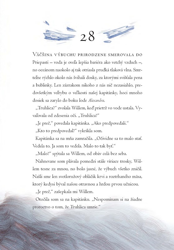 Toto nie je detská kniha. Nedávno som ju videla v kníhkupectve veľmi nešťastne zaradenú v kategórii Chlapci (čo mi samo o sebe dosť prekáža, rozdeľovať literatúru na chlapčenskú a dievčenskú). Som presvedčená o tom, že to nie je príbeh pre mládež. Je surový, je smutný, je bolestivý a plný násilia. Tento príbeh má byť pre všetky hlúpe sebastredné dospelé bytosti, či už ľudí, alebo veľryby, aby sa nad sebou zamysleli. V odlišnosti sa dajú nachádzať podobnosti a prepojenie sveta nad hladinou a toho opačného pod ňou je prehĺbené fantastickými prvkami v živote morských velikánov. Fantastické sú preto, lebo harpúna v plutve veľryby je absurdná.