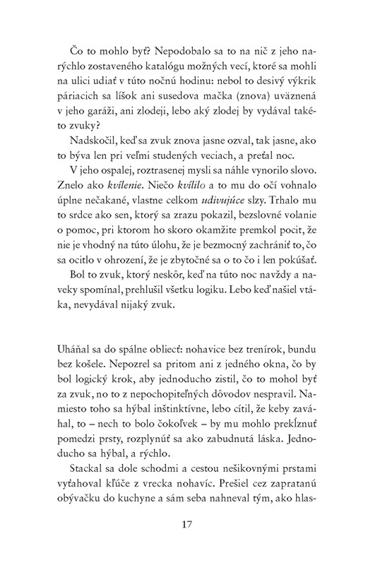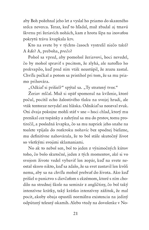 Tým, že Patrick Ness je jeden z mojich najobľúbenejších autorov, sa netajím. Hoci som neprečítal od neho všetky napísané diela, prečítal som dosť kníh na to, aby som sa usvedčil v tom, že je to nesmierne talentovaný a nevšedný autor, ktorý má na svete jedno poslanie: písať pre nás, čitateľov, svoje všedno-nevšedné príbehy. Jeho diela sú vždy originálne, no vychádzajú z vecí nám známych. Napríklad také Volanie netvora je o chlapcovi, ktorý musí prekonať nejednu životnú prekážku; Niečo viac je román o živote a o smrti a Najdlhší deň Adama T. pojednáva o jedinom dni v živote tínedžera, i o všetky slastiach a starostiach, ktoré sa počas neho môžu odohrať. A o čom je Nessov dospelácky román s názvom Noc žeriava? Nuž, je o láske, o vzťahoch a tak trochu aj o príbehoch. A Patrick Ness znovu a zas len ukázal, že je zapeklite skvelý spisovateľ.