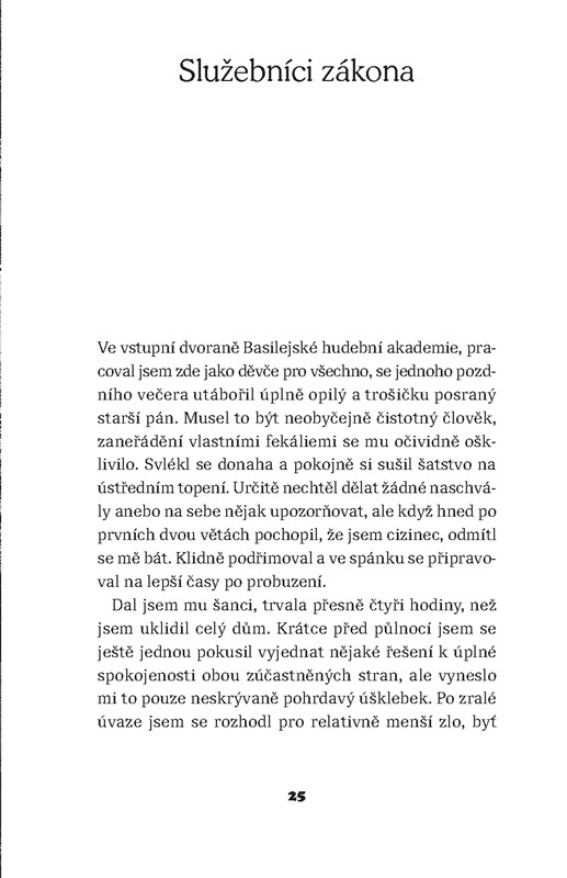 Cizinec na pobřeží není veselá knížka, přestože je vyprávěna humorným jazykem. Autor v ní s nadhledem a bez sentimentu předkládá na miniaturní ploše velká a tragická témata lidské existence, zajímá jej člověk opuštěný v davu, člověk bloudící katastrofami moderní doby. Převážná část „38 miniatur“ je však inspirována životem v cizí zemi, jež se jen pozvolna mění v nový domov. Smutně komické kotrmelce plynoucí z neznalosti jazyka či odlišných zvyklostí, poetická podobenství či paradoxy pomáhající překonat cizotu a vlastní nejistoty, naděje, soucit a solidarita, jež někdy přichází z naprosto neočekávané strany – texty, v nichž autor čtenáři s důvěrou svěřuje tu nejosobnější zkušenost, potvrzují, že posledním a skutečný domovem, o který jej nikdo nemůže připravit, je pro spisovatele jeho řeč.