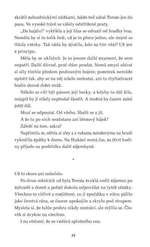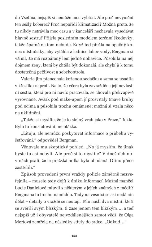 Nová detektivka Michaely Klevisové zavádí čtenáře do idylické krajiny Beskyd, kde na horách ještě žijí lidé podobně prostě a v souladu s přírodou jako generace jejich předků. I sem ale vstoupil byznys, který staré roubenky mění na hotely a penziony a vše živé v lesích na lovnou zvěř. Realitní agentka Olga byla zavražděna na odlehlém místě vysoko v horách před roubenkou, kterou nabízela k prodeji. Stalo se to jen několik týdnů po vraždě makléřky v Praze. Oba případy spojují podobné okolnosti, a navíc se zavražděné ženy mohly znát. Kriminalista Josef Bergman proto odjíždí do hor a pátrá mezi místními obyvateli. Není to však jednoduché, protože obyvatelé horských samot jsou nedůvěřiví a uzavření a spousta z nich má svá tajemství, o která se s Bergmanem rozhodně dělit nechtějí.