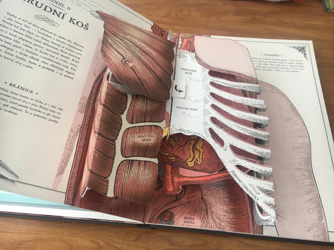 Tato kniha tě přenese do staré Anglie. Ilustrace inspirované viktoriánskou odbornou literaturou a úchvatné trojrozměrné modely zaručují dokonalý požitek z výpravy za poznáním toho, jak funguje lidské tělo. Je rok 1839, ty jsi student medicíny a chystáš se na svou první pitvu. Pod bedlivým dozorem zkušeného doktora Walkera se podíváte dovnitř lidského těla – a to doslova vrstvu po vrstvě. Prozkoumáte kosti, svaly, mozek, srdce… Hodina právě začíná!