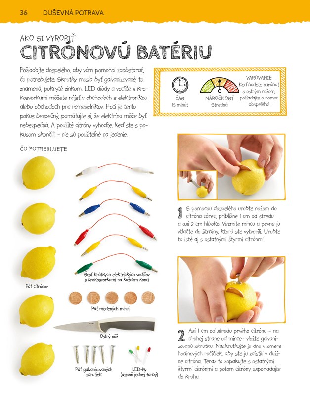 - duševná potrava - kde si vieme vyrobiť napríklad neviditeľný atrament alebo fantastické lízanky z kryštálového cukru,