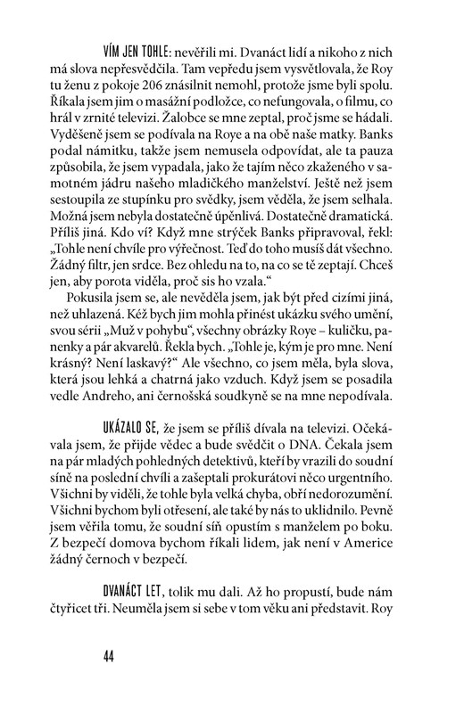 Mohl by to být příběh každého manželství, přátelství i rodičovství, každé silné i slabé ženy, každého silného i citlivého muže. Jsou však lidé, kterých se nefunkční systém spravedlnosti dotýká častěji. A právě o těchto lidech s citem vypráví Tayari Jones, když rozehrává milostný příběh amerického Jihu ve 21. století.