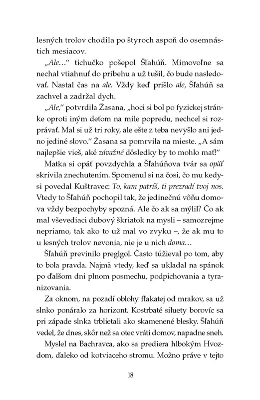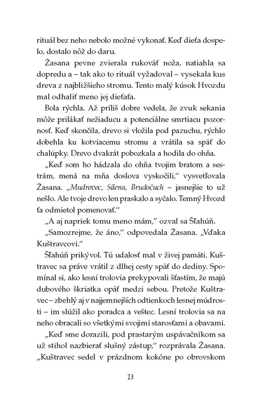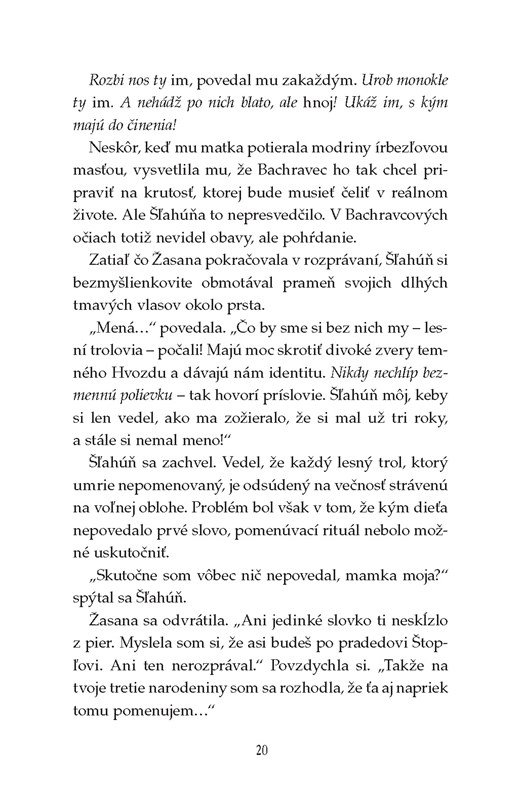 Nechajte sa vtiahnuť do tajuplného sveta – sveta lákavo nepreskúmaného a zároveň akosi zvláštne povedomého… Rozprestiera sa v ňom temný Hvozd, kde na každom kroku striehnu krvilačné príšery a rastú neznáme rastliny. Väčšina jeho obyvateľov radšej po celý život nezíde zo známych a bezpečne vyšliapaných chodníčkov. Len chlapec Šľahúň je iný než ostatní. Opúšťa osadu lesných trolov a vydáva sa na nebezpečnú cestu Hvozdom, aby konečne odhalil tajomstvo svojho osudu.