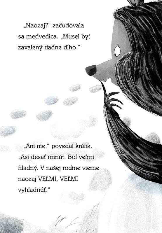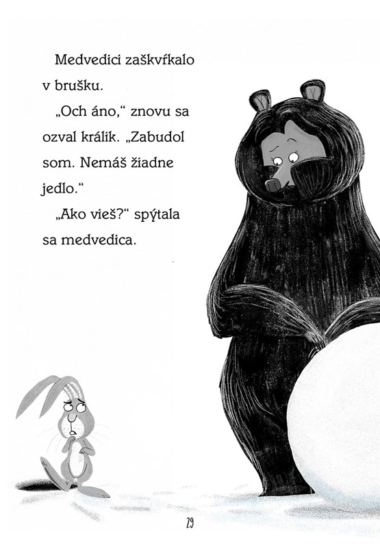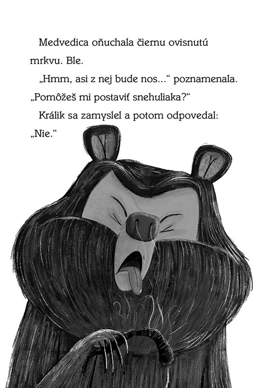 Medvedica sa nečakane prebudí uprostred zimného spánku. Keďže nemôže spať, rozhodne sa, že si konečne postaví snehuliaka. Králik to chce skúsiť tiež. A sám! Jeho snehuliak musí byť väčší a krajší! No vo chvíli, keď sa naňho rúti vlk, zistí, že by bolo fajn mať po svojom boku kamošku.