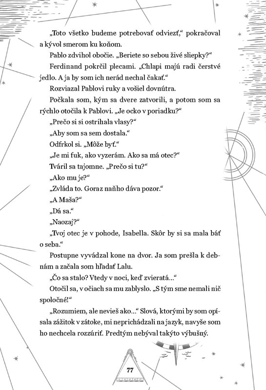 Od chvíle, keď na ostrov dorazil generál Adore, nikto nesmie prekročiť hranicu medzi Gromerou a zvyškom ostrova. To však Isabelle nebráni v tom, aby snívala, že raz preskúma každučký centimeter Zabudnutého územia, ktoré leží za hranicami. Keď zmizne jej najlepšia kamarátka, Isabella sa votrie do pátracej skupiny – je predsa dcérou kartografa. Navyše okrem máp vie čítať aj hviezdy, ktoré ju môžu doviesť až do zabudnutého srdca opusteného ostrova.