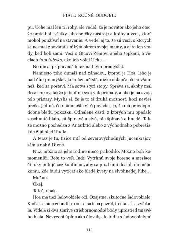 V jediný deň sa udejú tri strašné veci. Essun, obyčajná žena z malého mesta, sa vráti domov a zistí, že jej manžel brutálne zavraždil ich syna a uniesol dcéru. Medzitým padne mocná ríša Sanze, ktorej inovácie boli tisíc rokov základom civilizácie, a väčšina jej obyvateľov umrie pre pomstu šialenca. Najhoršie zo všetkého však je, že sa objavila červená prasklina, ktorá sa tiahne srdcom rozľahlého kontinentu nazývaného Nehybnosť, a chrlí do vzduchu toľko popola, že môže zatemniť oblohu na celé roky. Alebo storočia.