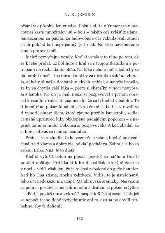 Essun sa musí vydať po stopách trosiek svojej rodiny cez smrtonosnú, umierajúcu krajinu. Bez slnečného svetla, čistej vody či ornej pôdy a len s obmedzeným množstvom zásob hrozí Nehybnosti vojna: boj na život a na smrť medzi národmi, no nie o moc alebo územie, ale o základné zdroje potrebné na to, aby prežili dlhú temnú noc. Essun nezáleží na tom, či sa svet okolo nej zrúti. Ak bude musieť, zničí ho aj sama, len aby zachránila svoju dcéru.