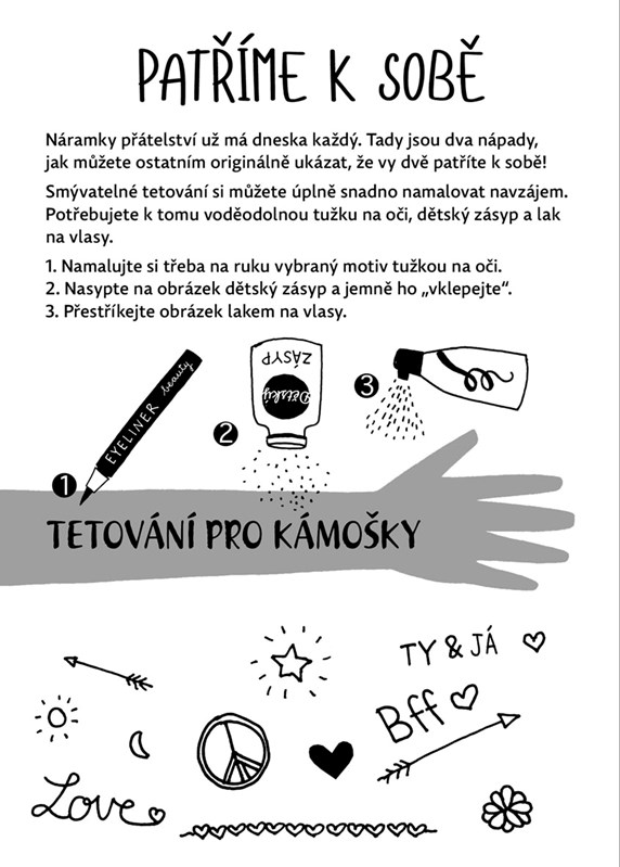 Ve dvou je vždycky větší zábava! Proto v tomto deníku najdeš spoustu nápadů na to, co spolu se svojí (nejlepší) kámoškou podnikat, vymýšlet, vyrábět, tvořit nebo třeba upéct. Nechybí stránky s testíky a prostor pro dokreslování obrázků, zapisování nápadů či tvorbu návrhů.
