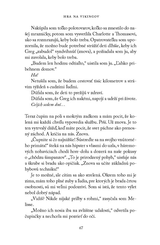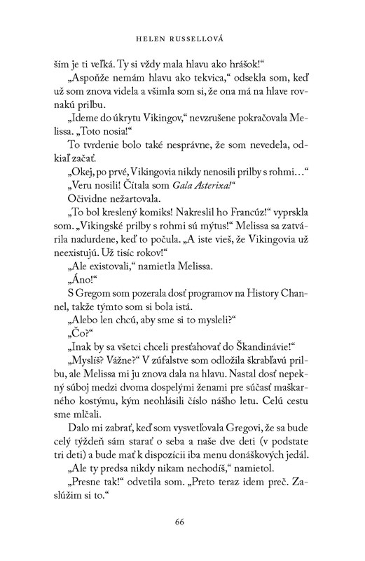 Hra na Vikingov je samostatnou knihou bez príslušnosti k sérii, a tak jej môže dať šancu naozaj každý. A to najmä fanúšikovia medziľudských vzťahov, ktoré tu hrajú prvé husle. No nejde pritom ani tak o romantiku, ako skôr o pravdivé zhodnotenie stereotypov a postupného upadania citov. Hlavná hrdinka Alice sa potýka s nefungujúcim manželstvom, obetovaním vlastného šťastia v prospech detí a s narušeným súrodeneckým vzťahom. Vyše 350 strán je však dostatočný priestor na to, aby v sebe našla silu a odhodlanie vyriešiť aspoň najpálčivejšie problémy. V tomto smere môže byť román Helen Russellovej stimulom pre čitateľov, ktorí sa rovnako ako Alice nachádzajú na emocionálnej križovatke a uvažujú, akým smerom sa vybrať. Po smiechu býva plač a táto kniha je toho dôkazom. Okrem humoru totiž zaútočí aj na vaše dojatie. Takže ak hľadáte knihu, ktorá sa pohrá s vašimi pocitmi a pritom vo vás zachová pozitívny dojem, už ste ju našli.