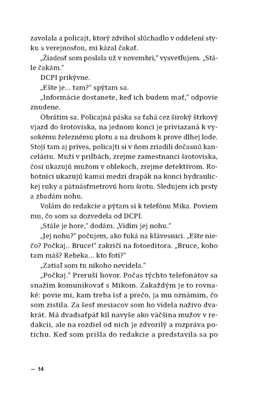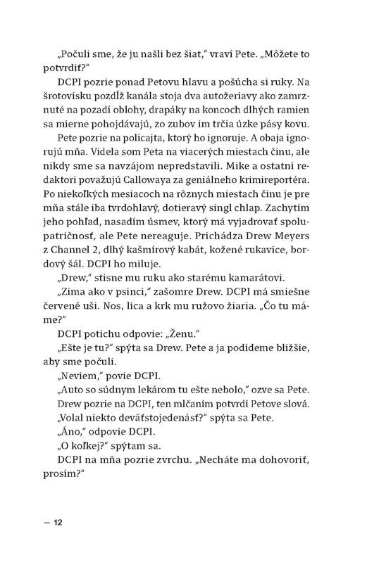 Ďalším bodom sú archetypy - či skôr až stereotypy, ktoré autorka využíva na zobrazenie každej postavy - reportérka je empatická, všestranná, inteligentná, policajti sú nečinní, neschopní a znudení, záporná postava je klasický záporák i s klišé záverečným monológom, v ktorom prezradí celý svoj plán a zámer. Ak chápeme detektívku ako žáner s určitou fabulovou mustrou, tak v poriadku, ak však očakávame skôr inovatívnosť, v psychologizácii postáv jej veľmi nedostaneme. Po stránke naračnej je kniha jednoduchá, v hovorenom výrazive ,,sa ľahko číta", i keď je problém s prekladom, keďže podľa všetkého je kniha v origináli písaná v prítomnom čase priebehovom, čo je čas, ktorý sa v našej reči nedá spoľahlivo previesť v umeleckom texte a nie je námo sebe v texte prirodzený.