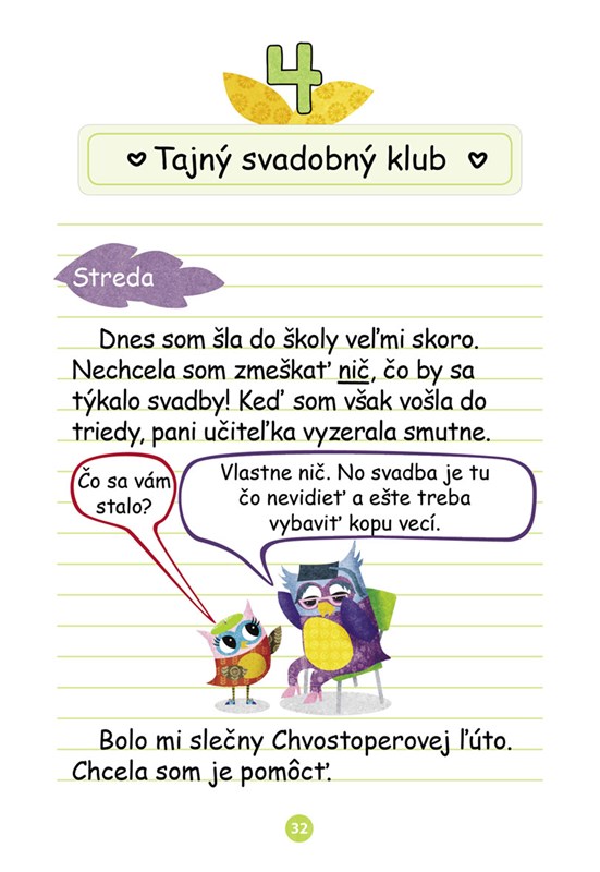 Evičkina pani učiteľka sa vydáva! Celú triedu pozvala na svadbu. Evička teda zvolá tajný svadobný klub. Keď sa však nečakane stratí vzácny náhrdelník, svadobný klub sa razom zmení na klub detektívov! Podarí sa im nájsť náhrdelník včas?