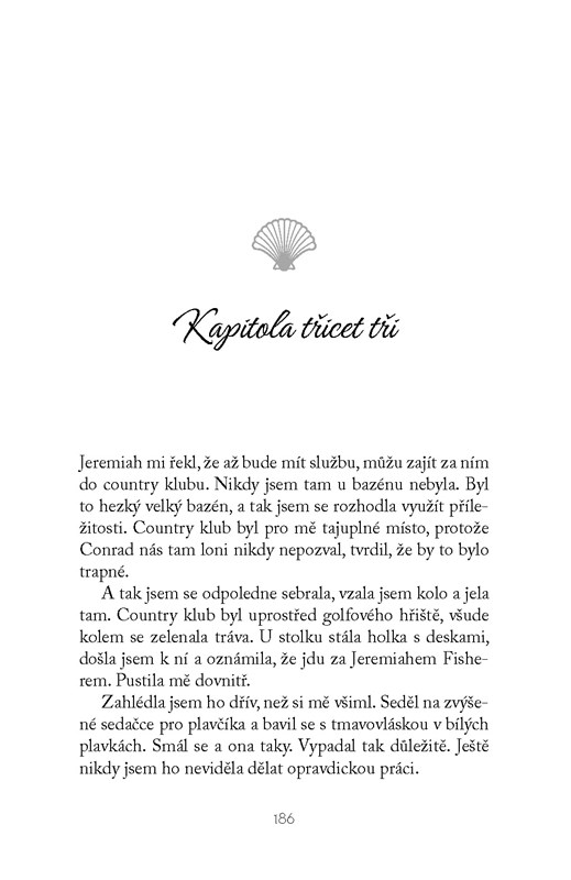 Pro Belly je každoročně nejdůležitějším obdobím léto, protože všechno pěkné a kouzelné se jí děje od června do srpna. Během zimy pouze počítá týdny do začátku dalšího léta, kdy konečně vypadne pryč z města a uvidí zase staré známé tváře. Zvlášť kluky. Někteří jsou pro ni jako bratři, někteří jsou její první lásky, ale většinou je to něco mezi tím. Tentokrát však přijde léto, kdy se z káčátka stává labuť a všechno se začne měnit.