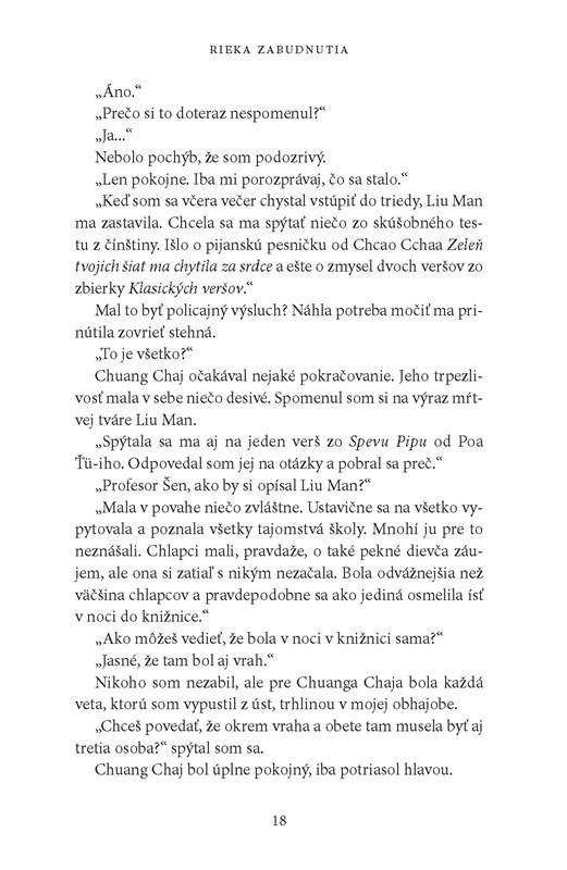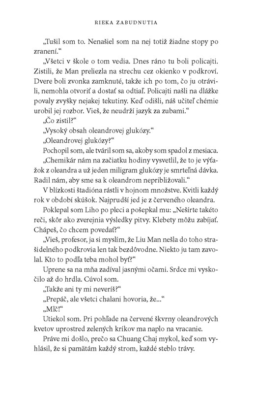 Román Rieka zabudnutia nie je klasickým európskym či americkým dielom žánru krimi-trileru, práve naopak, každom stranou dýcha nezameniteľnou východnou atmosférou ázijských krajín. Autor nezameniteľne tvorí nielen charakteristickú atmosferiku skrz typické čínske prostredie, zvyky či tradície, ale i skrz explicitný popis čínskej society, tej súvekej i súčasnej, jej neduhy, problematické názory, vyhr...