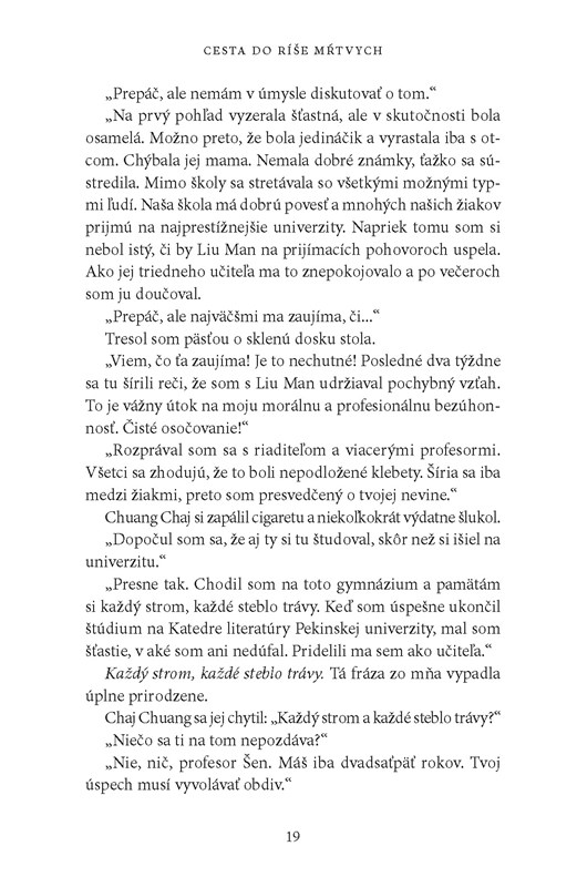 Dielo zaujme predovšetkým vďaka naračnej odlišnosti, orientálnosti žánru, ktorá sa na pulty našich mainstreamových kníhkupectiev nedostáva často (samozrejme, opomínam diela manga, ktoré u nás vychádzajú a nachádzajú si predovšetkým úzku skupinu vyhradených čitateľov), výbornou prácou s gradáciou a tvorením pocitu strachu a neistoty, ale i zameraním sa na národné legendy či tradície. Stratí však na zvláštnosti prekladu (ťažko súdiť, ako laik nepoznám pravidlá jazyku a komunikácie v Číne, no v preklade si napríklad aj neznáme postavy od začiatku rozhovoru tykajú. Nedokážem posúdiť, nakoľko je to správny preklad, ale z pohľadu Európana táto štylystika dialógu uberá na autentickosti), zbytočnej dĺžke diela, občasnej vatovitosti príbehových scén či repetetívnosti toho, čo už bolo vypovedané.