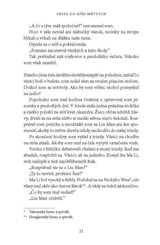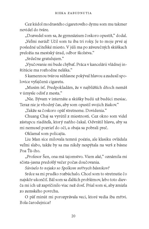 Autor teda svoju rodnú zem zobrazuje bez príkras, svoj fikčný svet pripodobňuje tomu reálnemu naozaj presvedčivo, a okrem sociálnej kritiky, ktorá je spolu s krimi leitmotívom rovnako dôležitá poukazuje i na čínsku vieru, jej mýty a motív náboženstva ako takého, spolu s jeho významom spracúva až na kosť, najmä vďaka častému používaniu hlbokých reflexií, úvah o živote, bytí či význame existencie. Samotný motív reinkarnácie, ktorý sa v čínskej viere objavuje a s ním spojený pojem ,,rieka zabudnutia", s ktorým pracuje Ťün je zaujímavým prvkom, nie tak celoplošne známym čitateľom európskej spoločnosti a skrz neho, skrz neistotu a v istom zmysle nespoľahlivého rozprávača vytvára gradáciu a napätie, kedy Ťün čitateľa drží v neistote až k záveru románu a premyslene tvorí mozaiku pravdy a lži, reality a fikcie.
