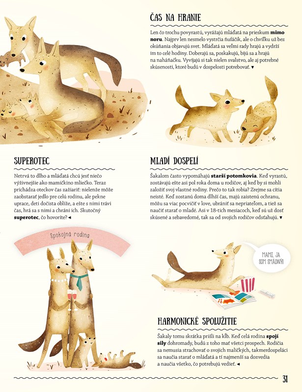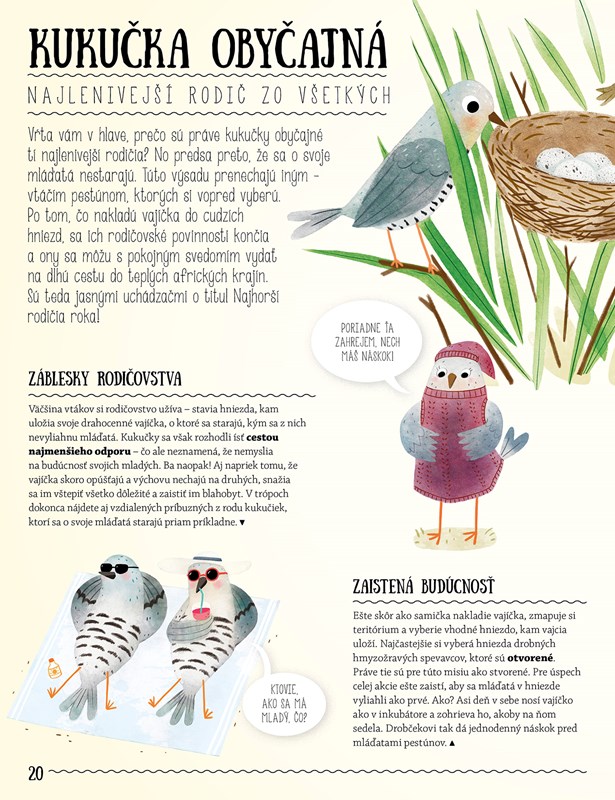 Pretože vtipným spôsobom učí deti budovať si pozitívny a hlavne priateľský vzťah k životnému prostrediu. Ak ste spolu s ňou už absolvovali hravé kurzy typu Nečakané priateľstvá, Prečo nie je tučniakom zima či Kam sa stratili zvieratká, je načase zúčastniť sa nového školenia. Tento raz sa s autorkou pozrieme na vzťahy v rodinách. A to nie v hocijakých. Spolu s nádhernými ilustráciami Linh Daoovej zavítame do živočíšnej ríše a spoznáme netradičné výchovné metódy netradičných zvieracích rodičov. Čo má kengura vo vaku, alebo ako zvieratá vychovávajú svoje mláďatá je názov najnovšej knihy Pavly Hanáčkovej, vydavateľstva Albatros a všetkých zvieracích rodičov, ktorí to v divočine známej ako príroda nemajú vonkoncom také ľahké!