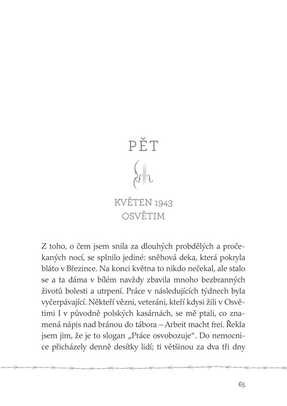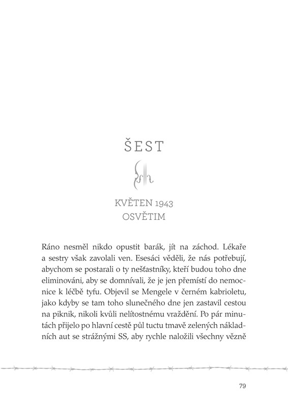 Po strašlivé cestě dorazili do Osvětimi, kde byli vrženi do zmatků táborového života. Manžel Johann byl od rodiny oddělen, Helene se však vší mocí snažila chránit děti své i ty, které měla kolem sebe. Když věznitelé zjistili, že Helene je nejen Němka, ale také školená zdravotní sestra, přinutili ji sloužit v táborové nemocnici, kterou řídil nechvalně známý doktor Mengele. Přestože ji podmínky v Osvětimi ničily psychicky i fyzicky, udělala všechno, co bylo v jejich silách, aby všem dětem kolem sebe pomohla mít se alespoň trošku lépe.