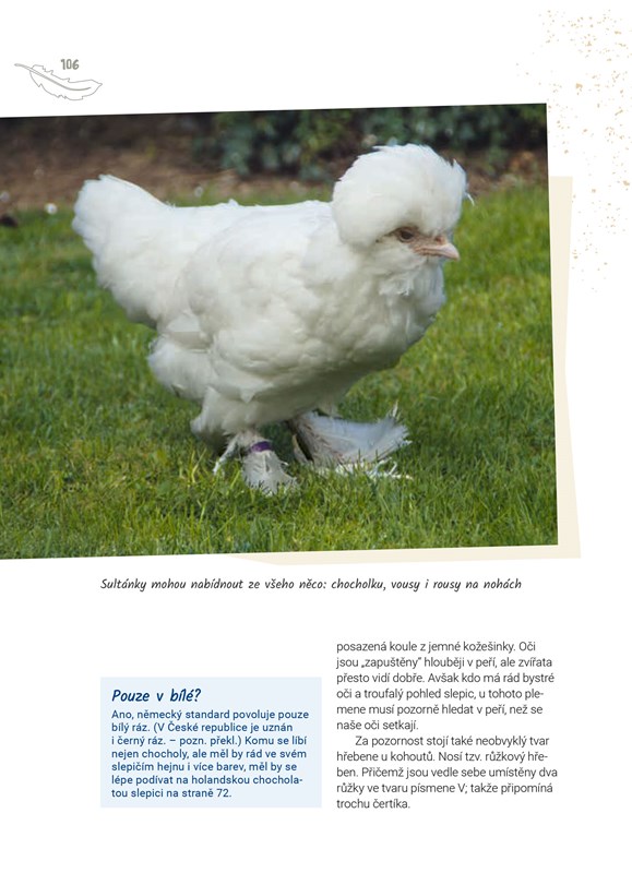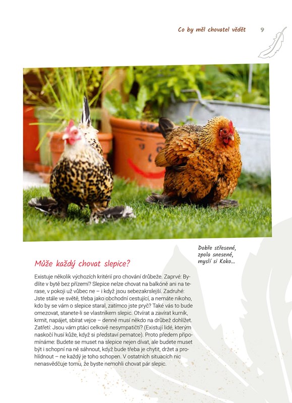 … na nás působí jako meditace a jóga dohromady: Důvěřivá opeřená stvoření nás zbavují napětí a uklidňují! Ať už jsou to rousné zakrslé slepice s ozdobnými bačkůrkami z peří, ať jsou to blahobytné amroksky, nejzdatnější nosnice mezi slepičími plemeny, nebo neuvěřitelně krásně zbarvené vyandotky – zde jistě najdeme vše potřebné pro výběr toho správného plemene pro naši zahradu.