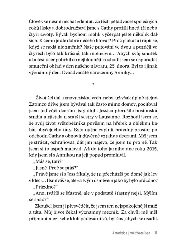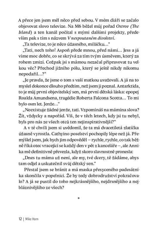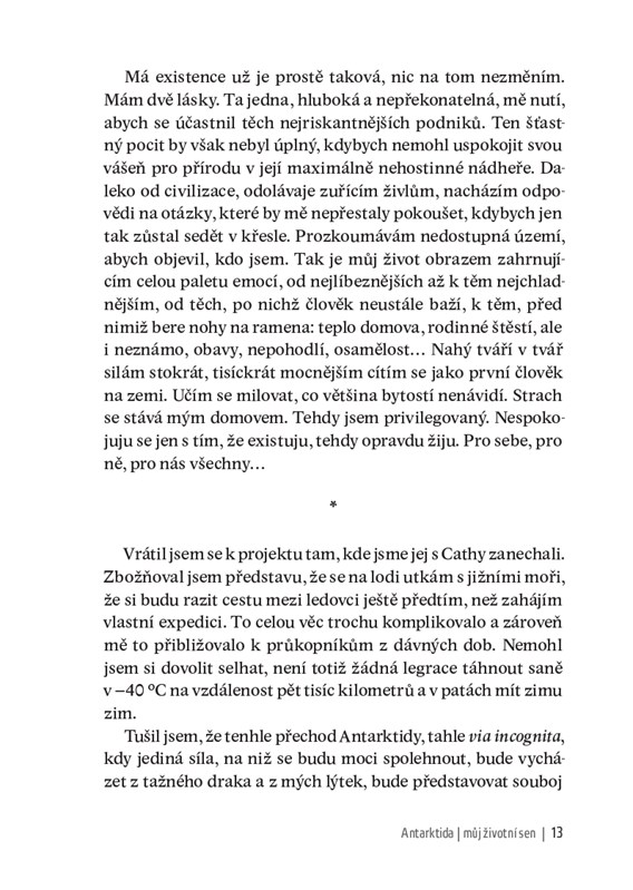 5 100 kilometrů za 57 dní nepřístupným terénem Antarktidy, přes jižní pól, úplně sám bez jakékoli pomoci. Takovou cestu vymyslel a uskutečnil explorátor Mike Horn, kterému by daleko spíš sedělo přízvisko dobrodruh. O podobném projektu dlouho snil a realizoval jej na počest své zemřelé ženy Cathy v období mezi 13. prosincem 2016 a 7. únorem 2017. A právě o tom je tento strhující cestopis, v němž chronologický popis událostí střídají stránky, v nichž rozmlouvá se svou ženou. Horn vyrazil z Kapského Města spolu se svou nadšenou posádkou na vlastní lodi Pangea na sever tohoto nejméně známého kontinentu, odkud pokračoval úplně sám, zapřažený do dvouapůlmetrákových saní, v nichž za sebou táhl to nejnutnější. Necestoval na lyžích po cestách, které před ním projely pásové stroje, ale absolvoval prvovýstupy pohořím královny Maud i masou Dómu C v nadmořské výšce přes 3 000 m s pomocí kitů, tažných draků. Přitom musel překonávat nesčetné nástrahy, antarktický chlad, bezvětří, zející průrvy a bezpočet jiných nebezpečí ohrožujících jeho život. A ještě nebyl u cíle a už se těšil na další dobrodružství – výpravu kolem světa nazvanou Pol2Pol. Takový už prostě je Mike Horn.