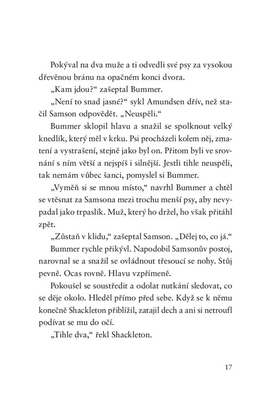 Tažný pes Samson je nesmírně hrdý na to, že se stane součástí výpravy do Antarktidy, kterou vede slavný badatel Ernest Shackelton. Těší se na sníh pod tlapkami a vítr v srsti, až poběží ledovou plání vstříc slávě, která jistě na všechny členy expedice čeká. Bummer, jeho kamarád ze smečky, si přeje jediné: expedici přežít a vrátit se domů celý.